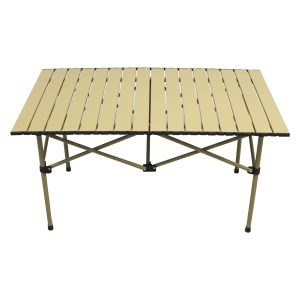 This camping table frame is made of lightweight and sturdy aluminum alloy, which can stand steadily even on uneven ground. The unique roll up design is very convenient for installation and disassembly, suitable for camping trips, picnics, and backyard barbecues. Foldable and compact in size, it won’t take up too much space when placed in the trunk of a car.